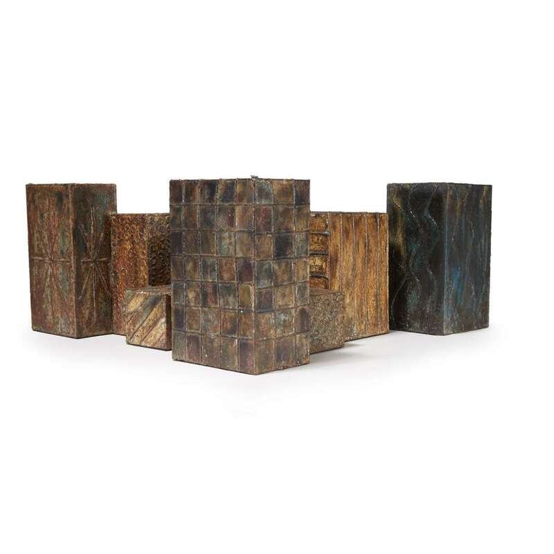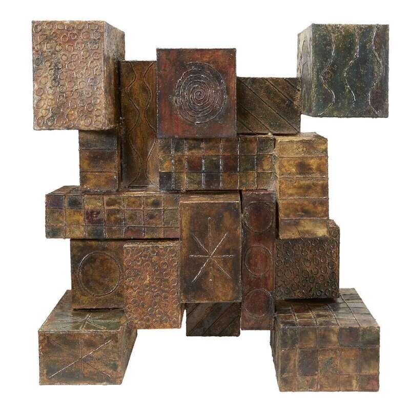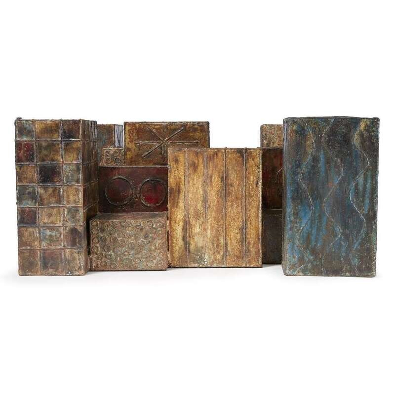 Patinated and welded steel, glass Signed and dated: "Paul Evans 75"