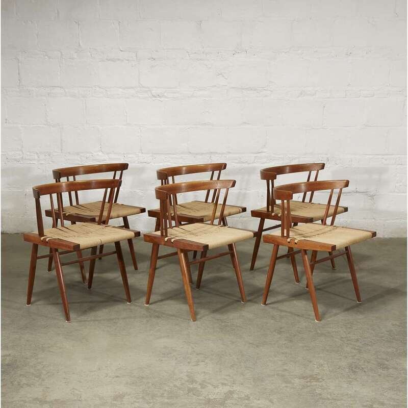 GEORGE NAKASHIMA (AMERICAN, 1905-1990) SET OF SIX GRASS-SEATED CHAIRS, NEW HOPE, PENNSYLVANIA, 1958