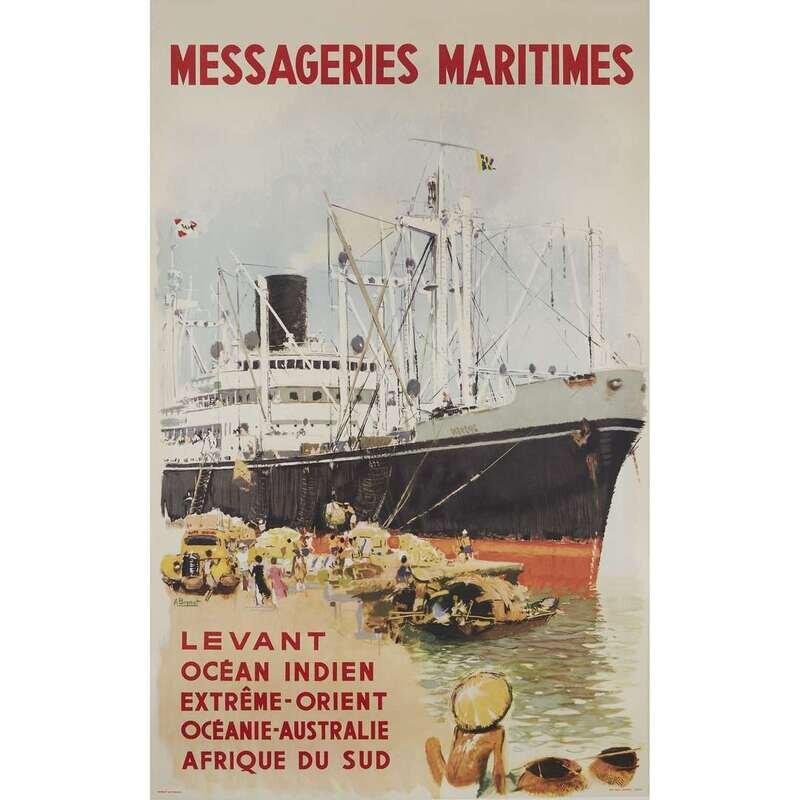 Brenet, Albert. "Messageries Maritimes, Levant, Ocean Indien, Extreme-Orient, Oceanie-Australie, Afrique du Sud." (Marseille): Paul Dupont, (ca. 1950). Linen backed. Condition A-/A.