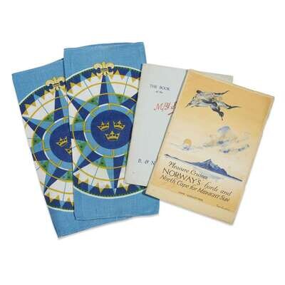 Assorted ephemera relating to Norwegian, Polish, and Swedish lines including, menu cards (6), deck plans (7), passenger lists (2), a photograph, sheet music, sailing schedules (3), two Swedish line tea towels, and advertising material. All together #approximately 24 pieces.