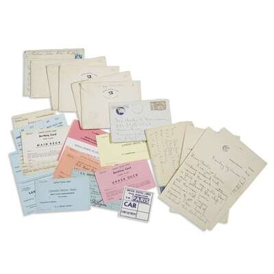 Assorted period stationary including autograph letters signed and assorted rail and ocean liner tickets. All together over 100 pieces.