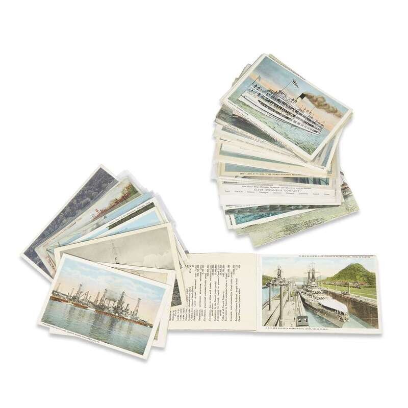 Approximately 75 cards including Mississippi River Boats (9), US Naval subjects, and Souvenir of the Panama Canal post card folder with (20) cards.