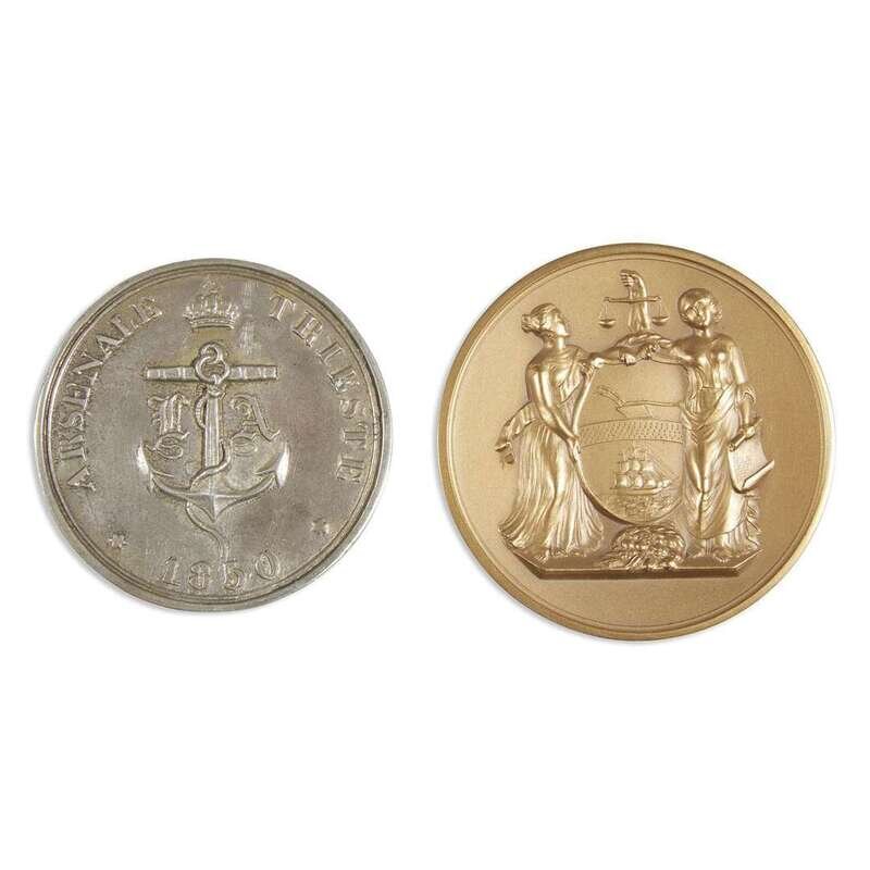 Two rare souvenir medallions from the Navigazione A Vapore Del Lloyd Austriaco and the sinking of the S.S. San Francisco 1850 and 1854