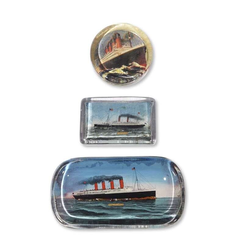 Comprising one each from the R.M.S. Lusitania, the R.M.S. Caronia, and the R.M.S. Britanic. (3).