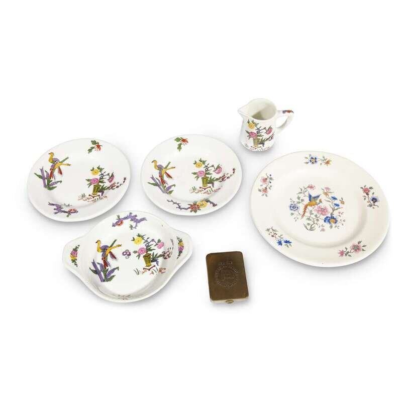 Comprising a side dish, two bread plates, a creamer, and a match box holder; together with a Furness Bermuda Line bread plate; all marked to undersides. (6).