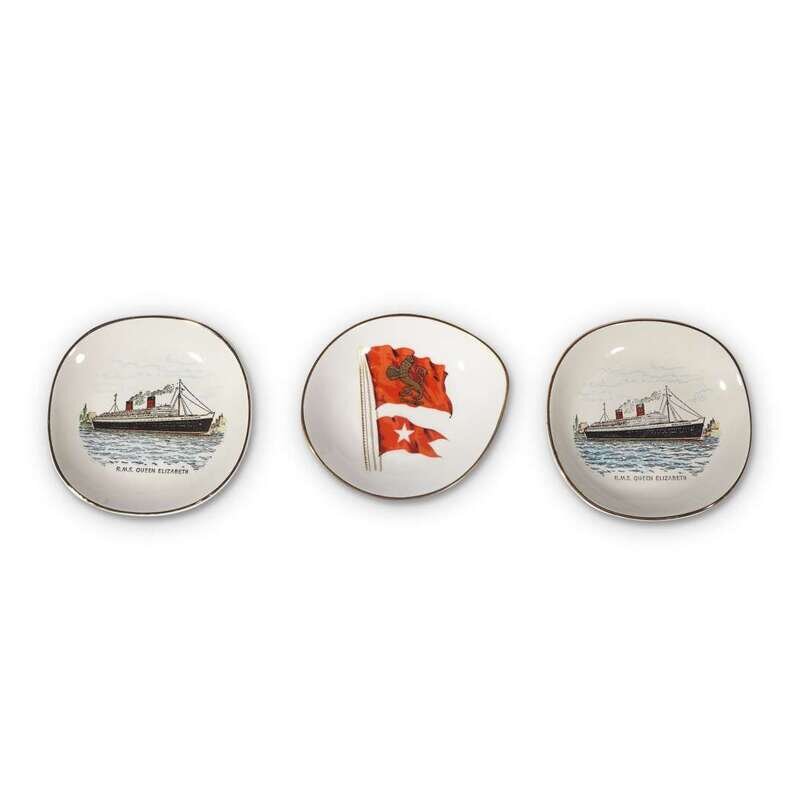 A group of three souvenir porcelain dishes from the R.M.S. Queen Elizabeth weatherby, hanley and staffordshire, england, 20th century