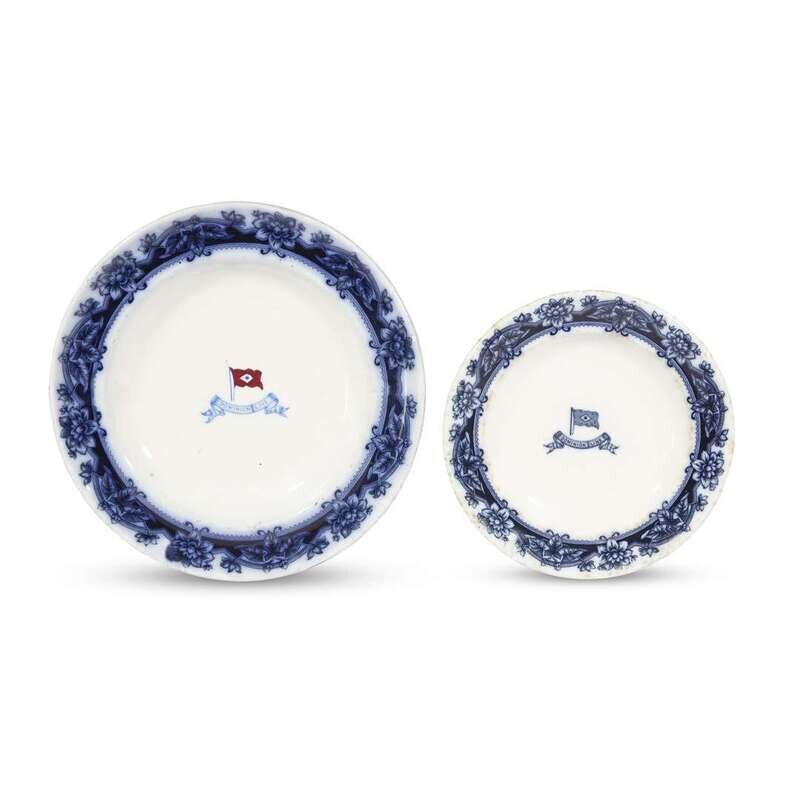 england, late 19th century With Dominion Line flag and logo to plate centers, both with impressed "Cauldon" mark and Thomas F. Bennett & Co. stamp to underside. (2).