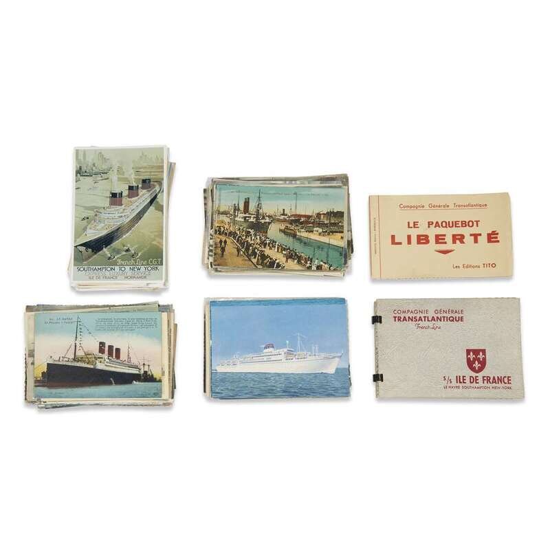 Approximately 200 cards including the French Line Ships De La Salle, Liberte, La Provence, La Lorraine, lot also includes Messageries Maritimes ships. Also includes several real photo cards, a few reproductions.