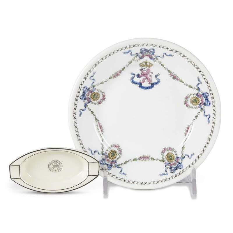 A Koninklijke Hollandsche Lloyd or Royal Holland Line bread plate and a Rotterdam Lloyd ashtray huschenreuther, bavaria, germany, early 20th century