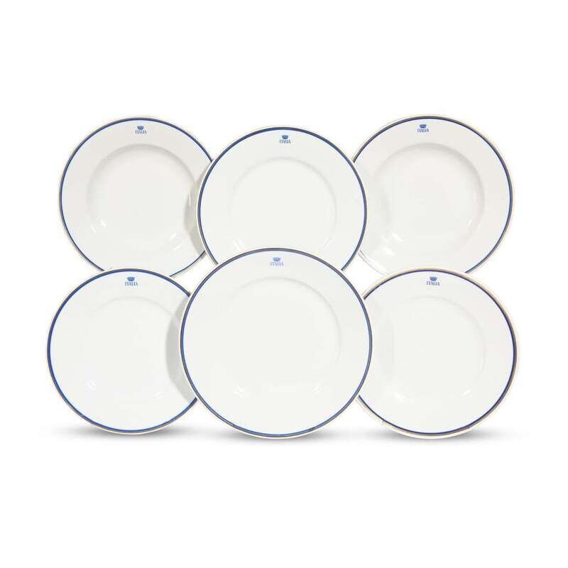 Comprising two soup bowls, two dinner plates, and two luncheon plates; all bearing Italia logo to rims and marked to undersides. (6).