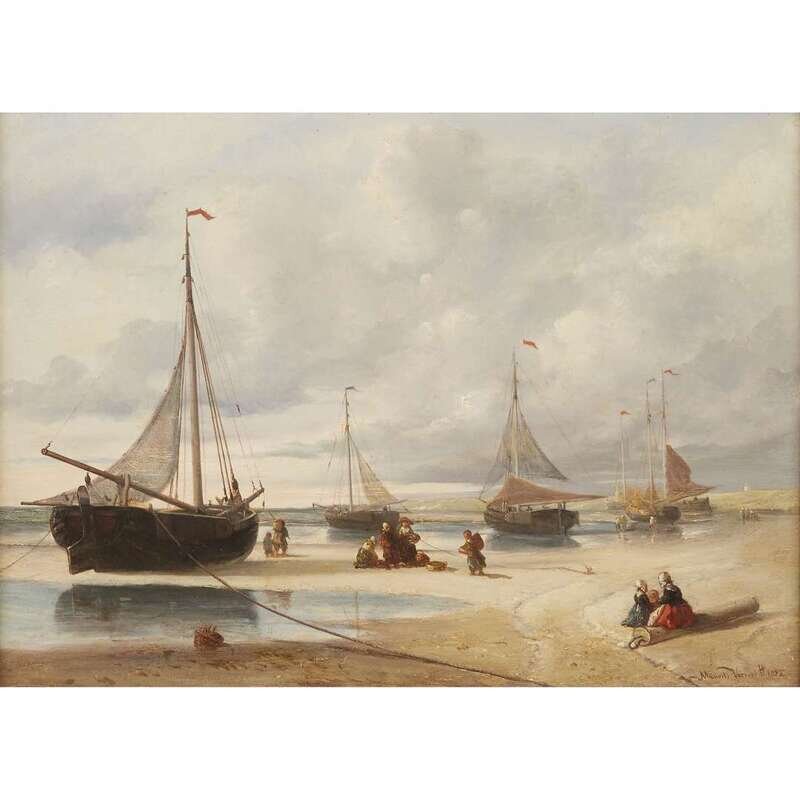 MAURITS VERVEER (DUTCH 1817–1903) FISHING BOATS AT LOW TIDE