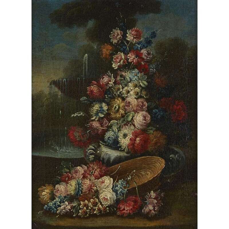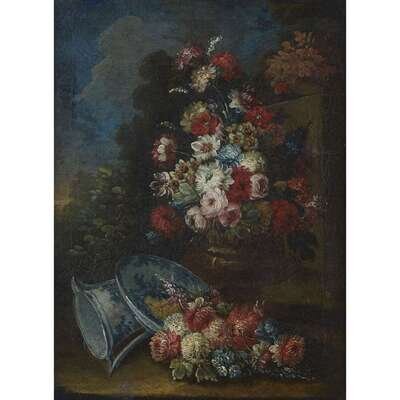 ITALIAN SCHOOL (18TH-19TH CENTURY) OUTDOOR STILL LIFE WITH MIXED FLOWERS; AND A COMPANION