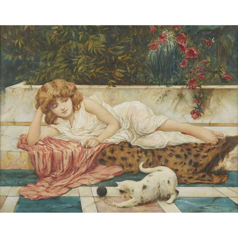 ITALIAN SCHOOL (19TH CENTURY) YOUNG GIRL PLAYING WITH A KITTEN