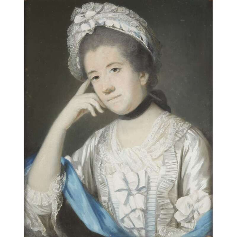 BRITISH SCHOOL 18TH CENTURY PORTRAIT OF A LADY WITH BONNET, HALF-LENGTH