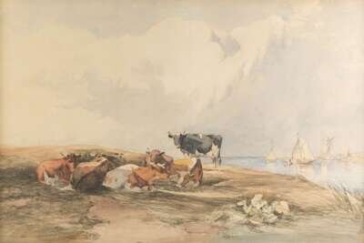 THOMAS SIDNEY COOPER (BRITISH 1803-1902) CATTLE IN RESPOSE