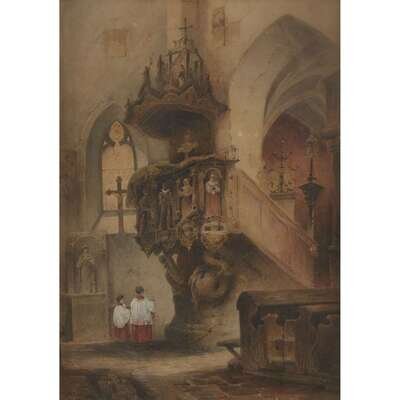 KARL GEBHARDT (GERMAN 1860-1917) THE CHURCH'S PULPIT