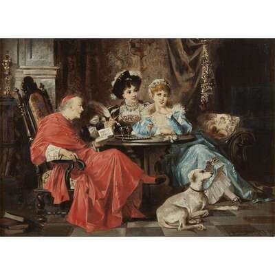 KARL SCHWENINGER THE YOUNGER (AUSTRIAN 1854-1903) VISITING WITH THE CARDINAL