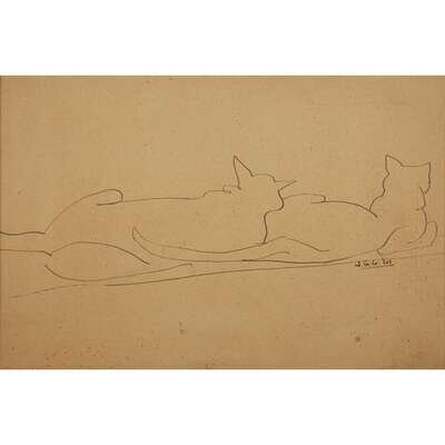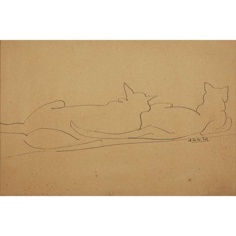 JUNE GROFF (AMERICAN 1903-1973) A PAIR OF CAT SKETCHES