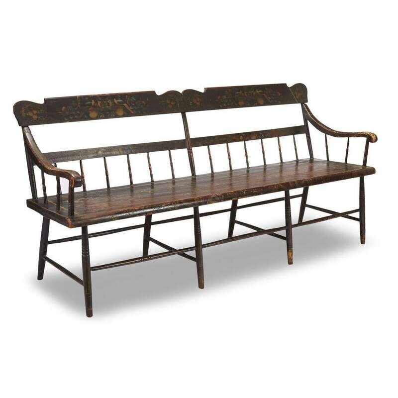 A painted and stencil-decorated bench Pennsylvania, circa 1840