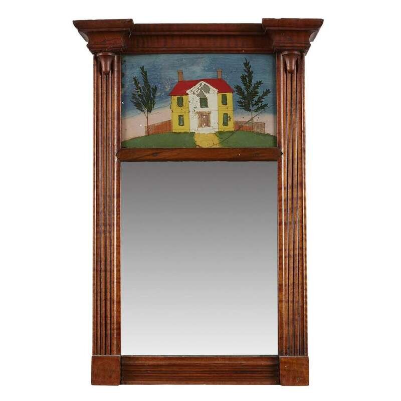 A late Federal mahogany pier glass with églomisé panel circa 1820