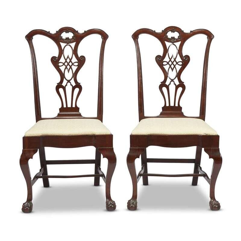A pair of finely carved Chippendale style mahogany side chairs late 19th/early 20th century