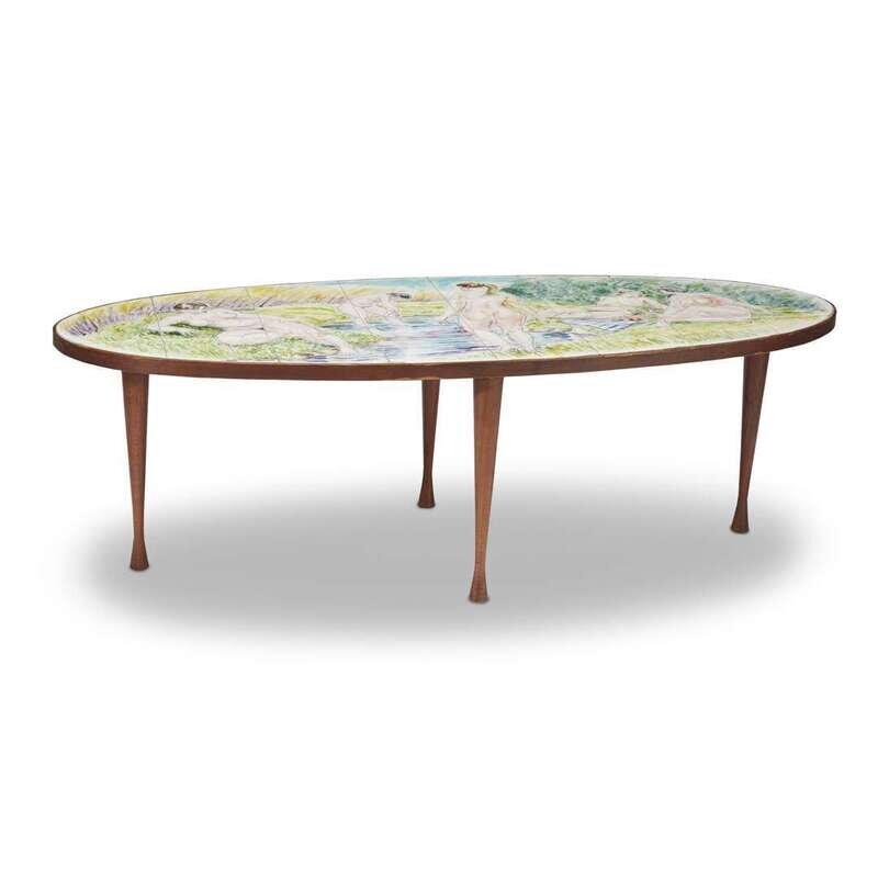 FRANCIS MCCARTHY (AMERICAN, 1923-2005) OVAL TILED COFFEE TABLE WITH NUDES, 1962