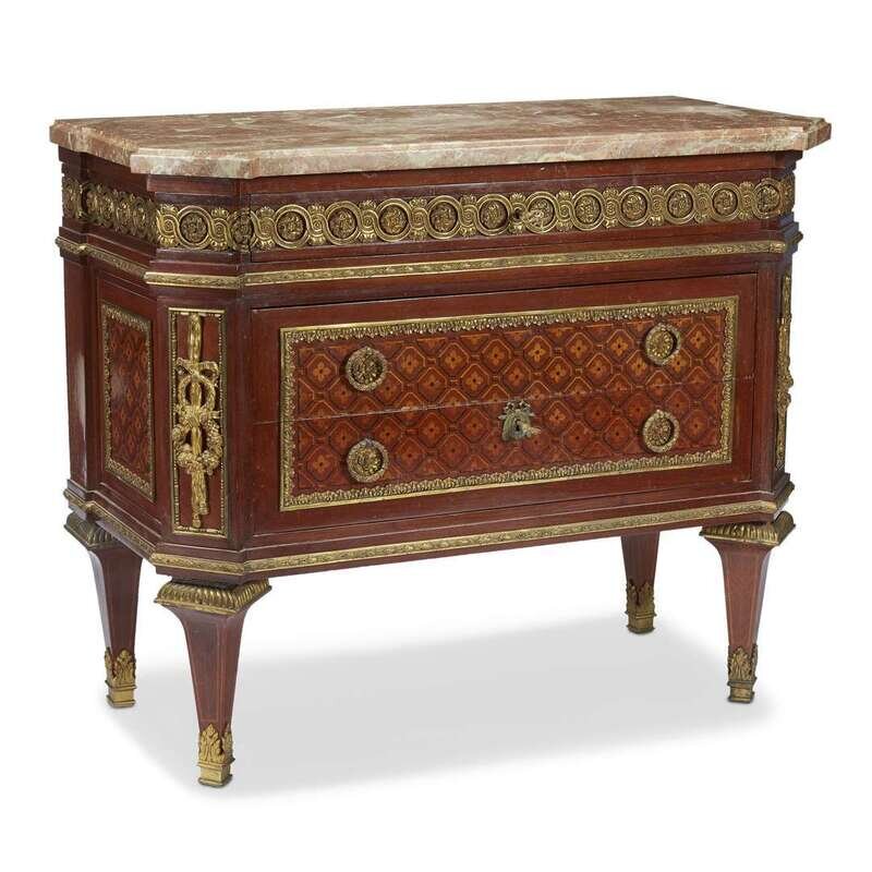 A Louis XVI style gilt-bronze mounted marquetry-veneered commode 20th century