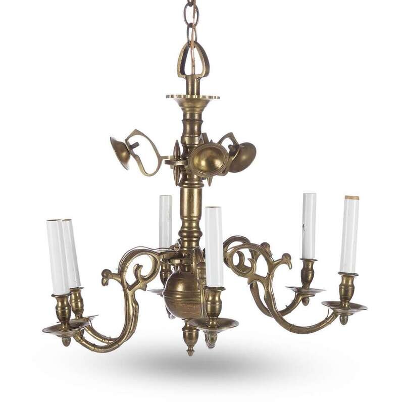 An Anglo-Dutch style brass six-light chandelier 19th/20th century