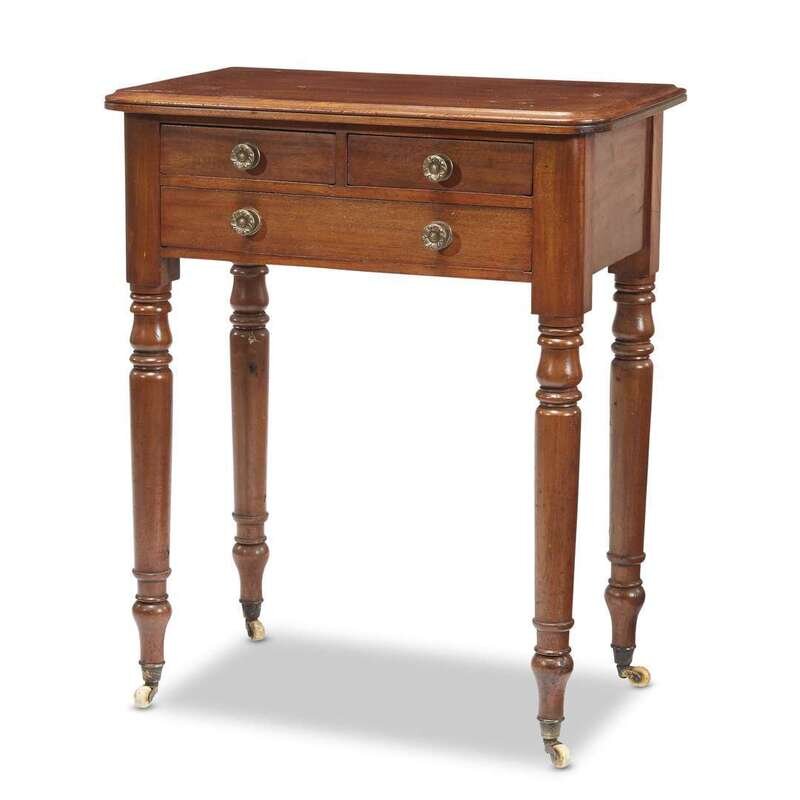 A Sheraton walnut work table on casters circa 1830