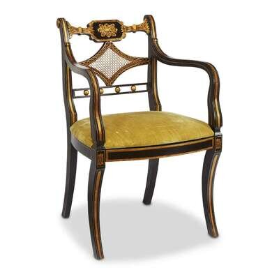 A Regency style parcel-gilt black lacquer armchair Smith & Watson, 20th century