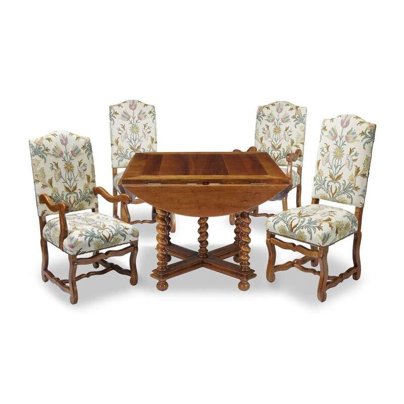 A Baroque Revival walnut dropleaf dining table and four dining chairs 20th century