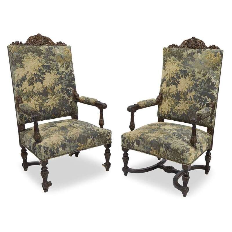 A pair of Renaissance Revival carved walnut fauteuils a la reine 19th century