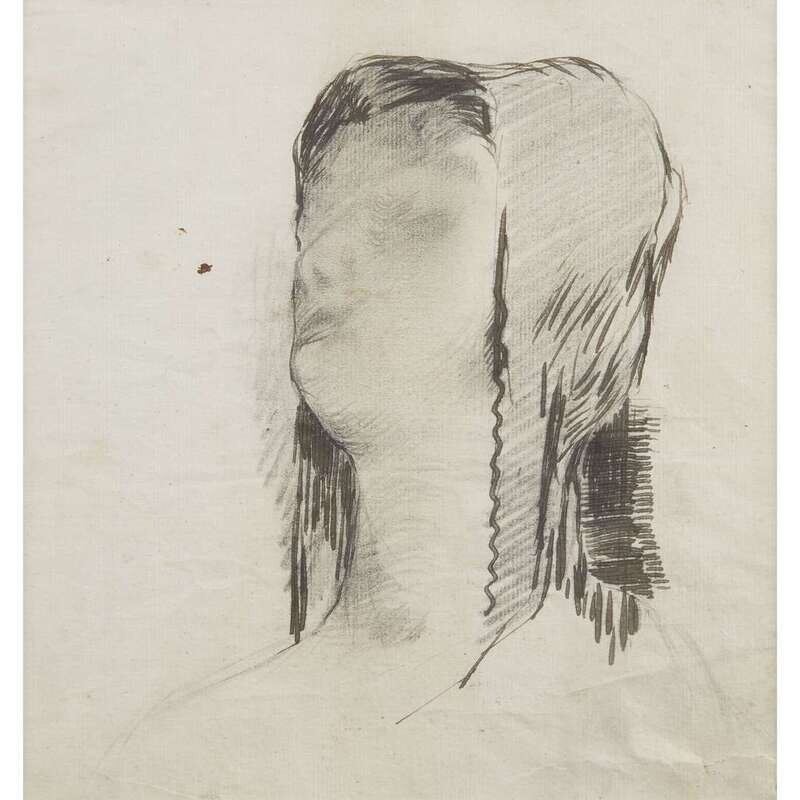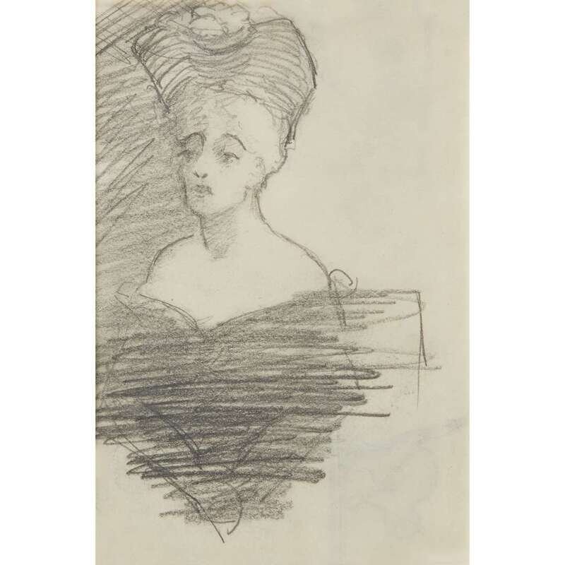 ARTHUR BEECHER CARLES (AMERICAN 1882-1952) WOMAN WITH A HEADDRESS; WITH A PENCIL SKETCH OF A CAT VERSOUNFINISHED HEAD OF A WOMAN