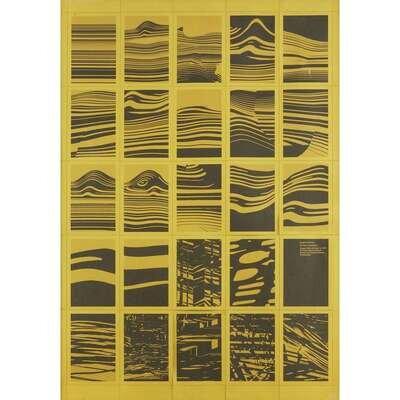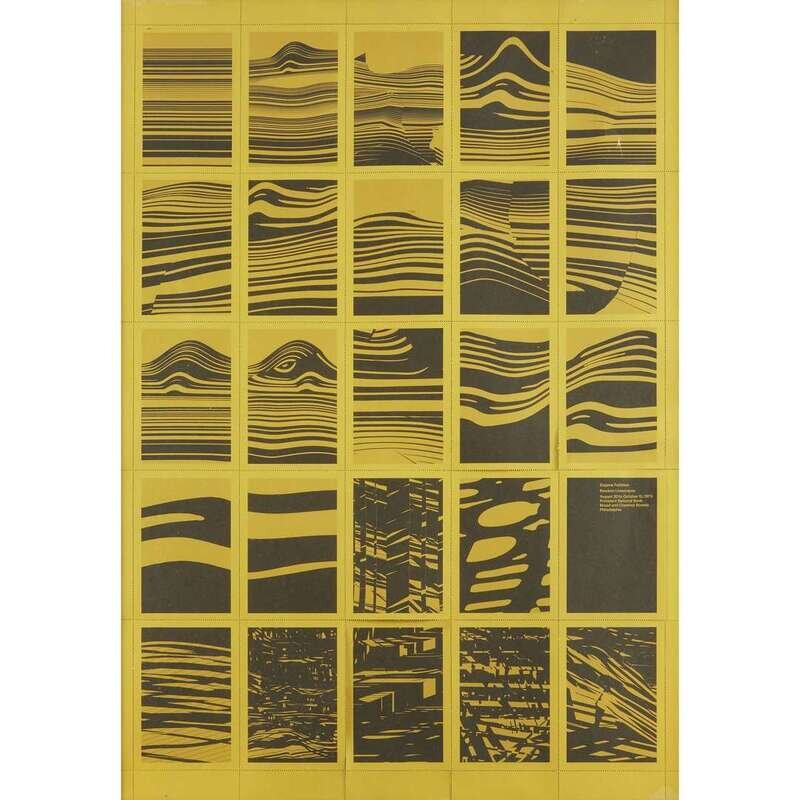 Color Lithographic Poster on perforated yellow paper. From "Random Linescapes," Provident National Bank, Philadelphia, Pennsylvania, August 20-October 12, 1973.