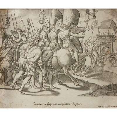 MASTER OF THE DIE (FRENCH/ITALIAN, 1512–1577) "TRIUMPH OF SCIPIO"FROM "SPECULUM ROMANAE MAGNIFICENTIAE"