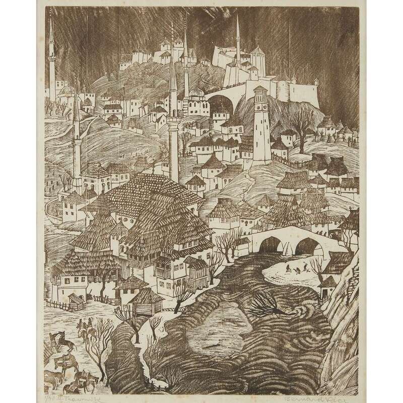 BERNARD RICE (AUSTRIAN, 1900–1998) "TOWN OF TROVNICK IN BOSNIA"