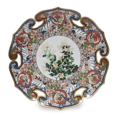 A Japanese cloisonné floral tray