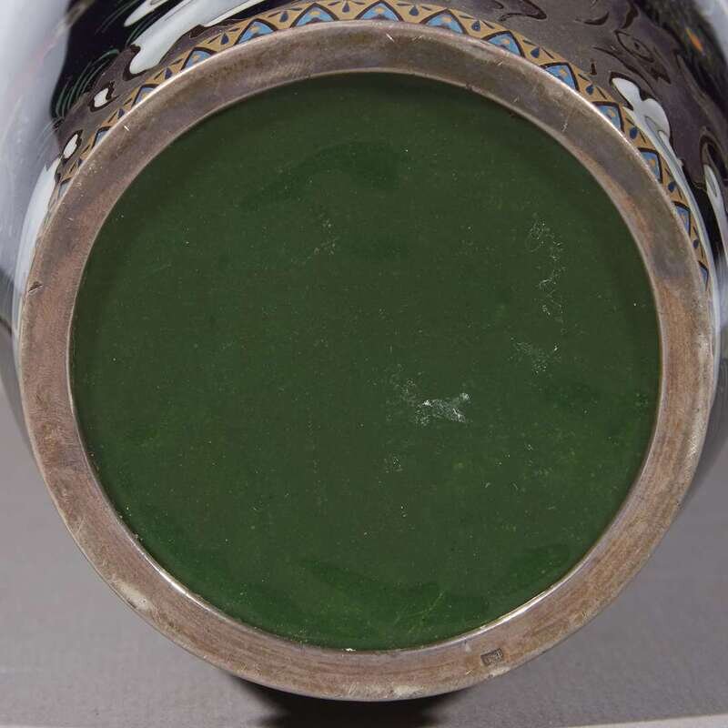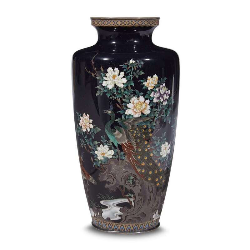 A finely-decorated Japanese silver-wire cloisonné "Peacocks and Peonies" vase meiji period, late 19th/early 20th century