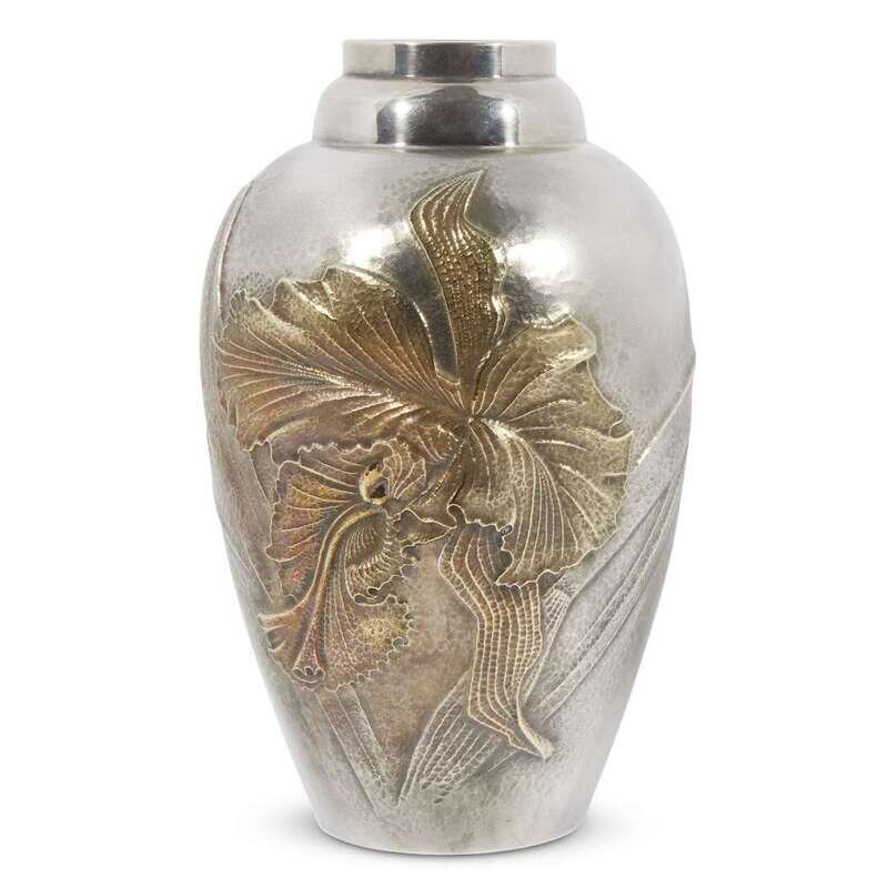 A Japanese patinated silver "Orchid" vase, Ibuse Keisuke 20th century