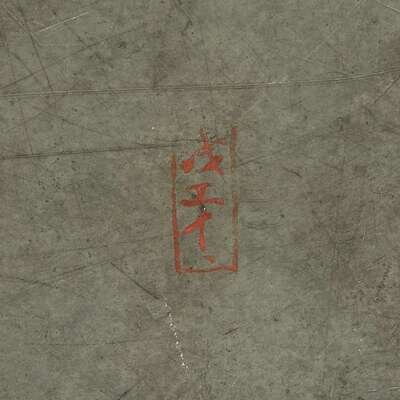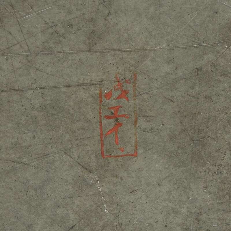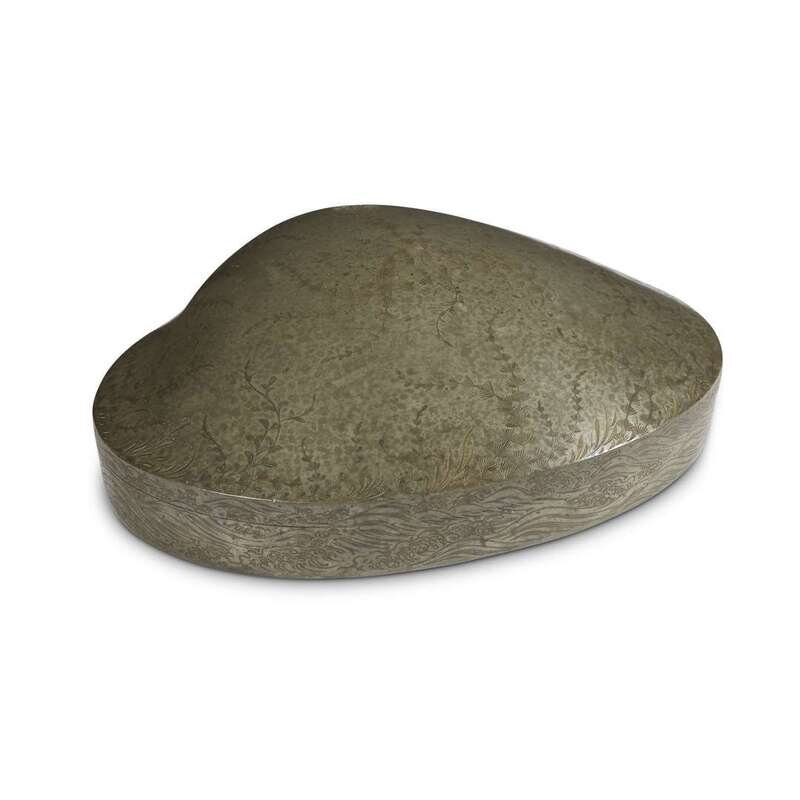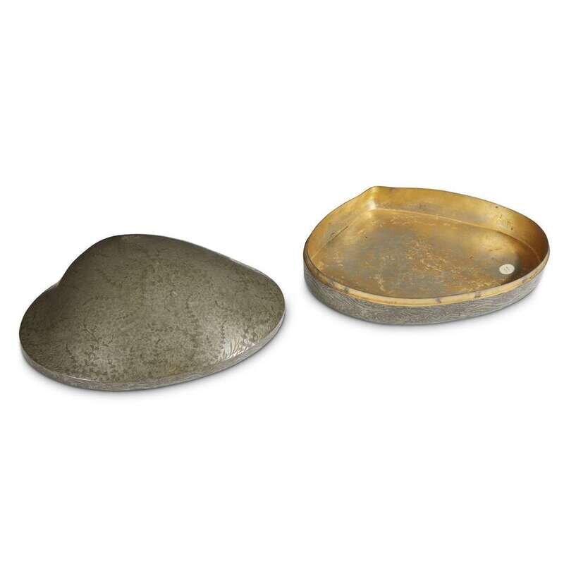 The cover engraved with water plants, side of base carved with waves, gilded interior, underside bearing a red stamped mark.