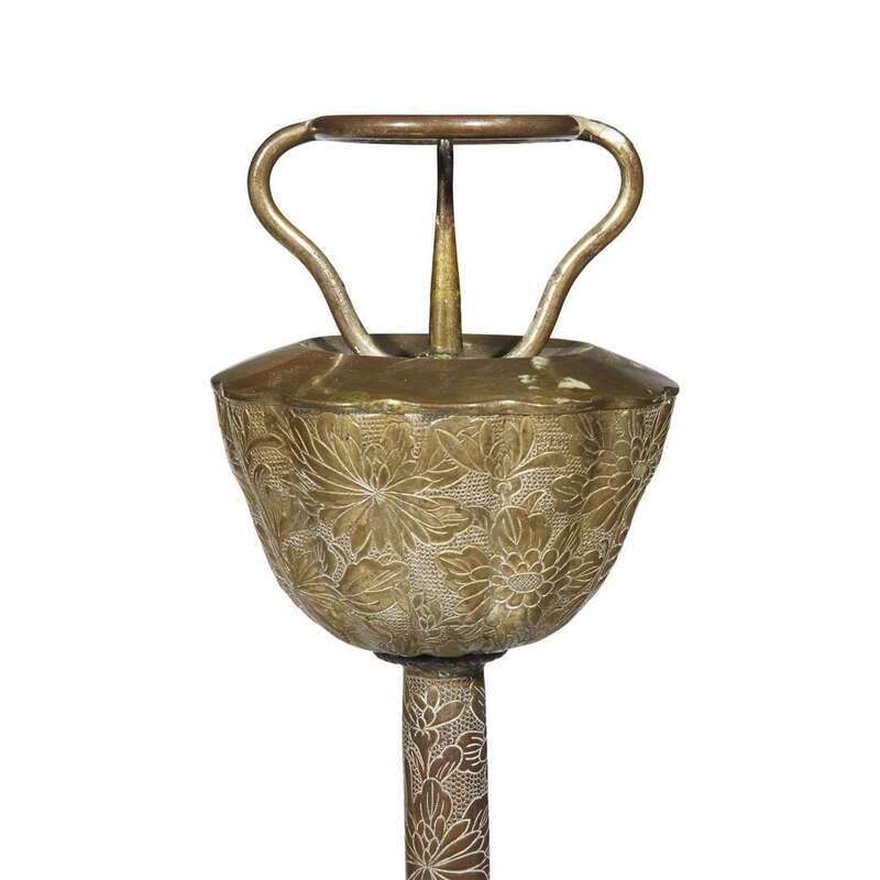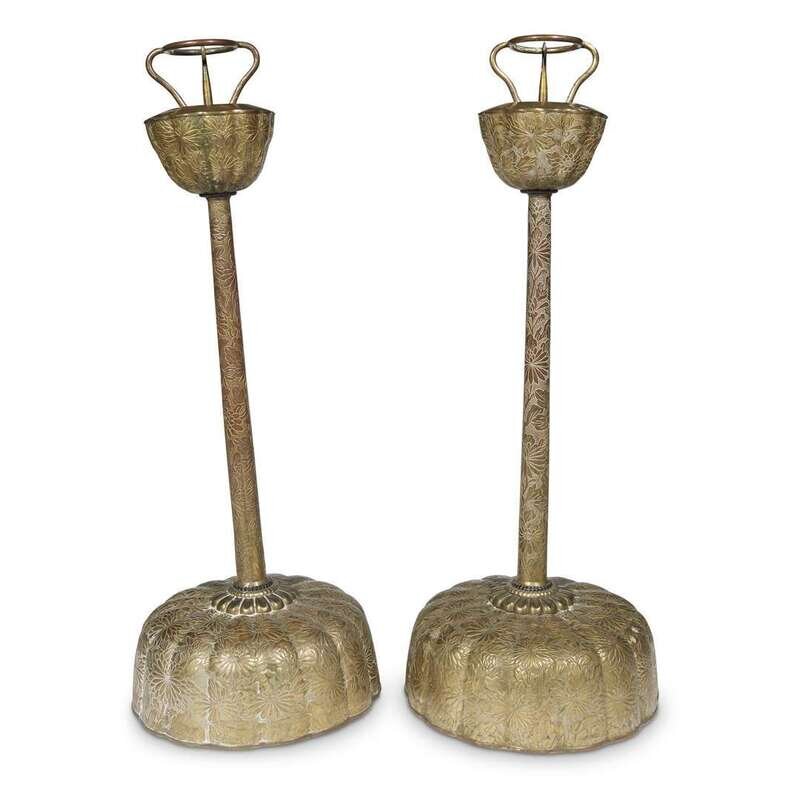 Pair of Japanese gilt copper repousse tall candlesticks edo period, circa 1800