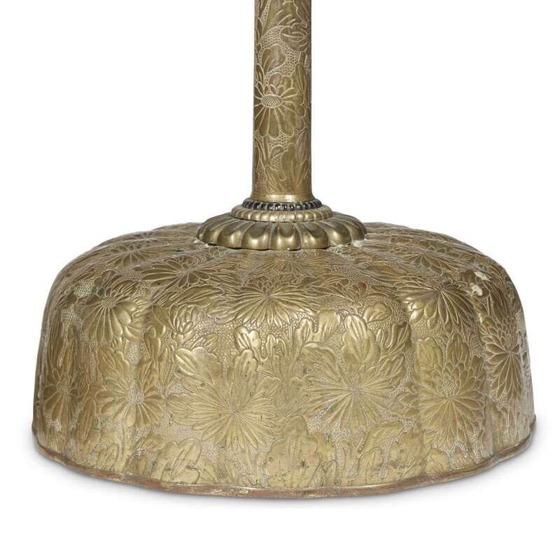 Embossed chrysanthemum design to body, neck, and base.