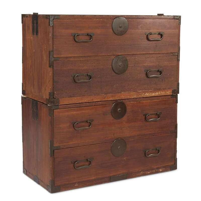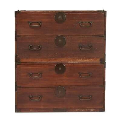 Japanese two part Isho pawlonia wood tansu kyoto, taisho period, circa 1920
