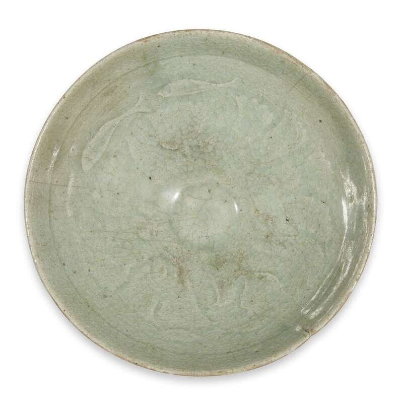 A molded celadon "Fish and Peony" bowl 12th-14th century, possibly Korean