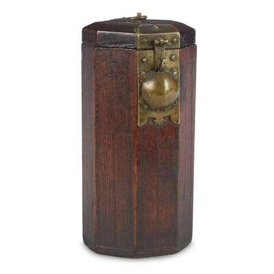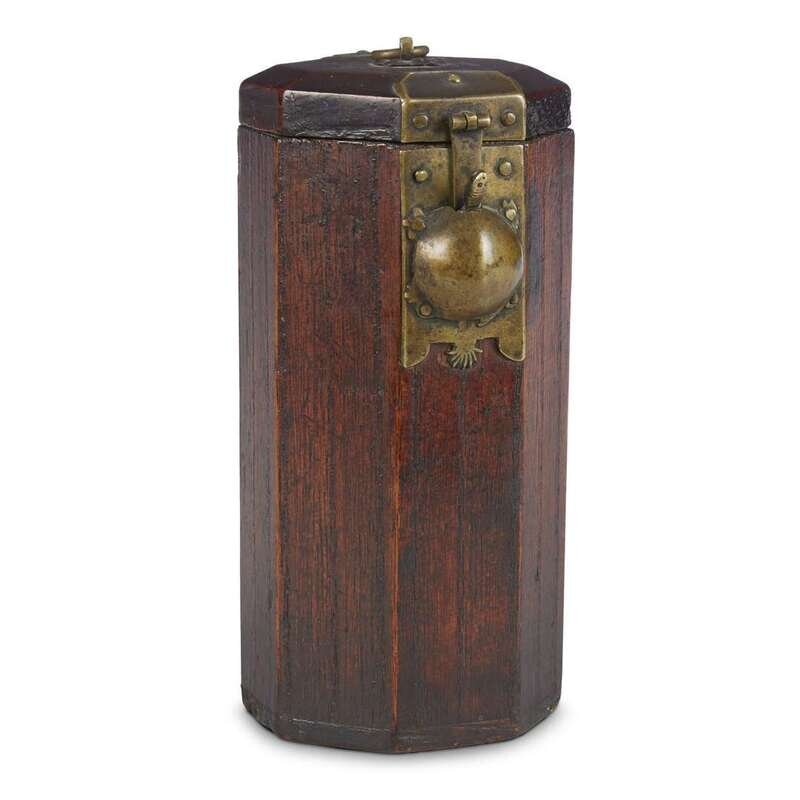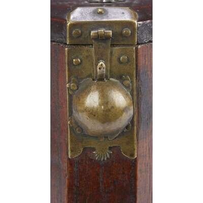 Mounted with a metal tortoise at the latch, and a loop handle to the top.