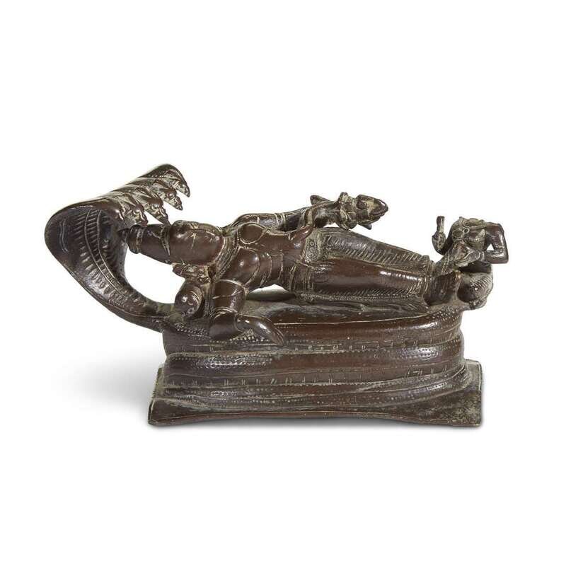 Comprising a sleeping Vishnu and Lakshmi group (losses), a provincial Sino-Tibetan yabyum figure, a mixed metal figure of standing Vishnu and and two similar figures of Lakshmi.