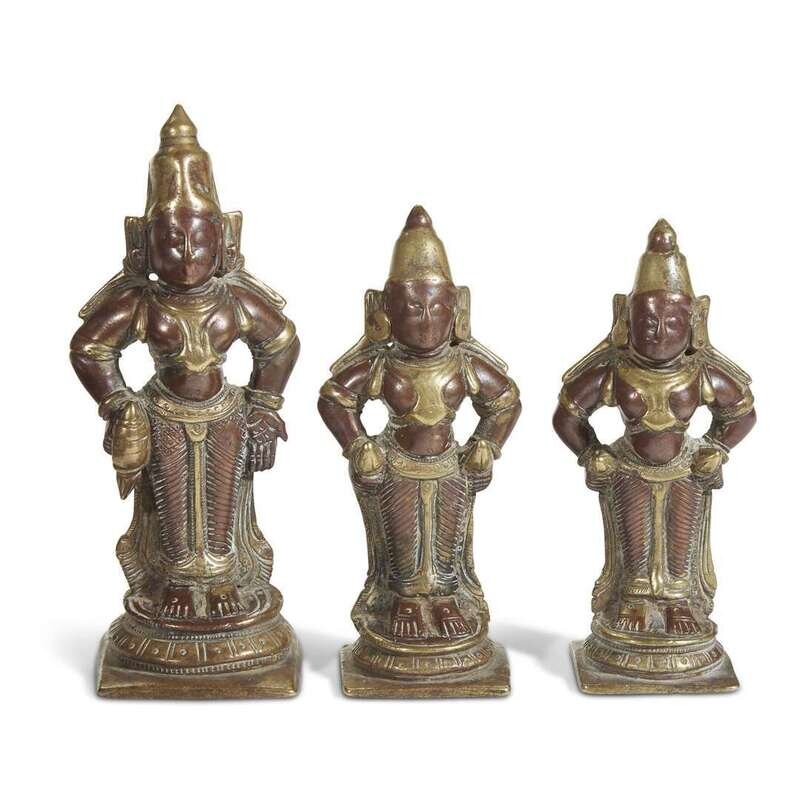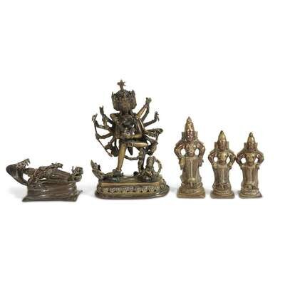 Four Indian and one Sino-Tibetan copper alloy devotional figures 17th-19th century