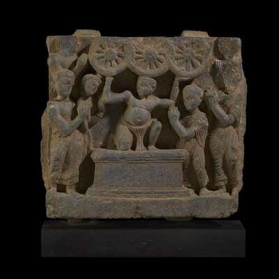 A Gandhara carved grey schist "Dharmachakra" frieze panel 2nd-4rd century
