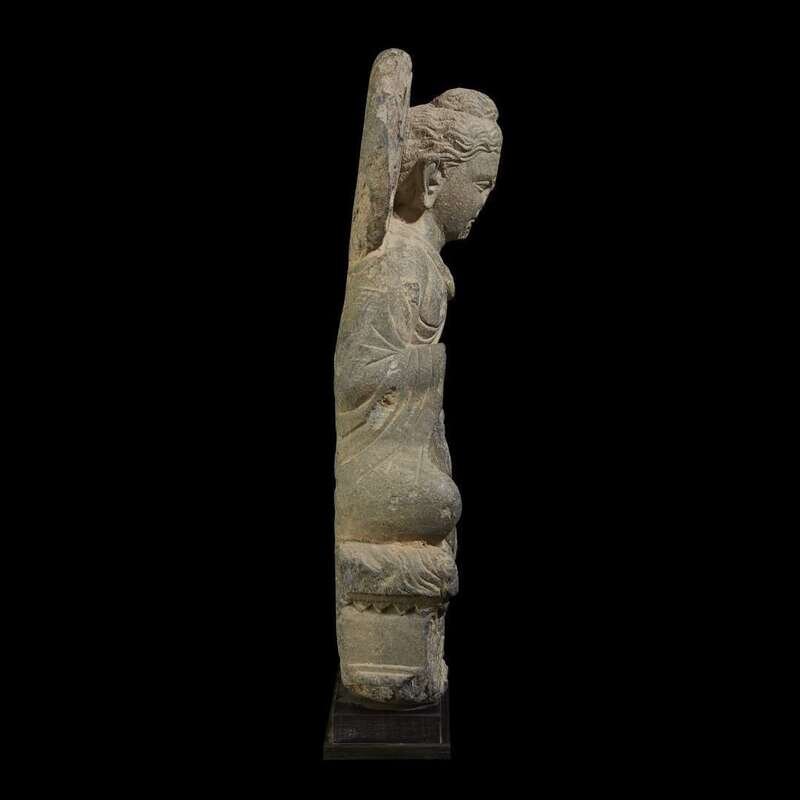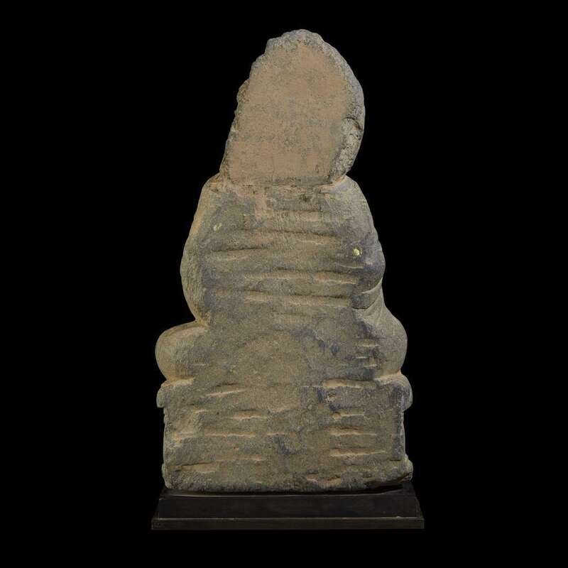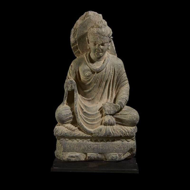 A Gandhara carved and inscribed schist figure of the seated Buddha 3rd to 5th century