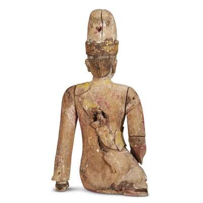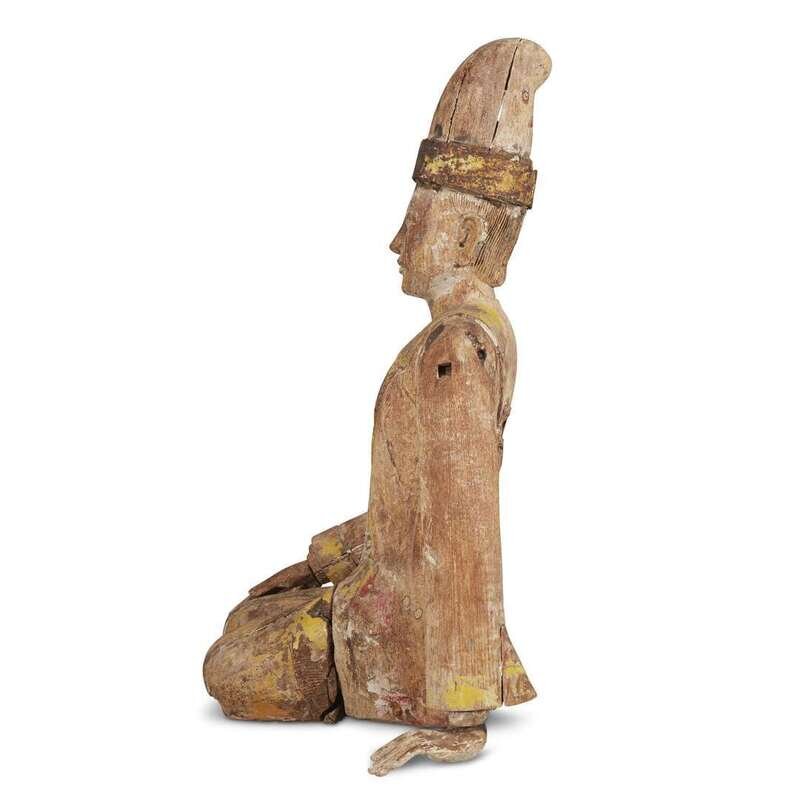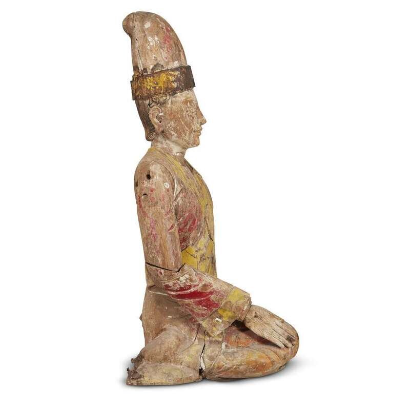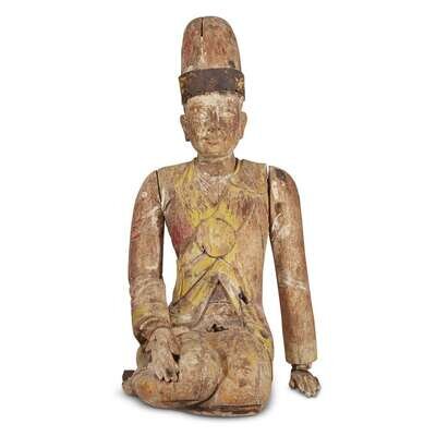 An Indonesian carved and painted wood seated dignitary